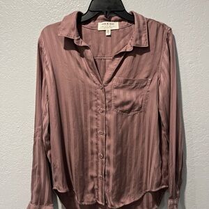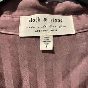 Cloth & Stone Anthropologie Top Mauve Grace Sateen Stripe Soft Button Down S