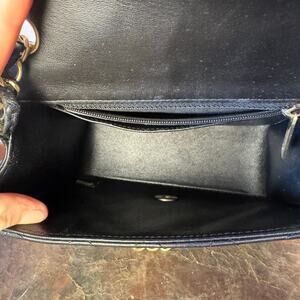 Authentic Chanel black lambskin mini in lambskin with gold hardware.