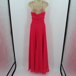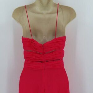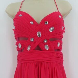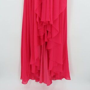 Cache Womens 2 Bright Pink Pleated Rhinestone Cutout Mesh Hi Low Dress Formal