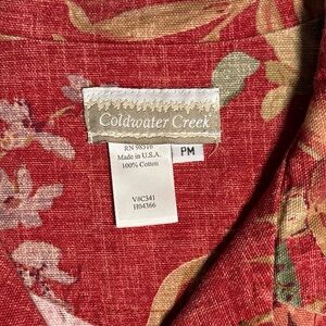 Coldwater Creek Vintage Red Floral Button Down Jacket Blouse 100% Cotton SZ PM