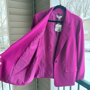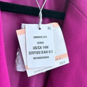 🆕🌸 Kasper Cerise Magenta One-Button Tailored Blazer Jacket Size 14W Office Work