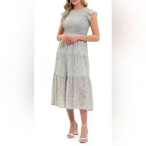 Sweet Wander Women’s Floral Smocked Tiered Midi SZL Boho Cottagecore Romantic