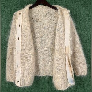 Vintage 70’s Handmade Shaggy Mohair Blend Cardigan Sweater Women’s Size Medium