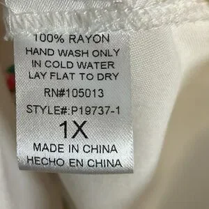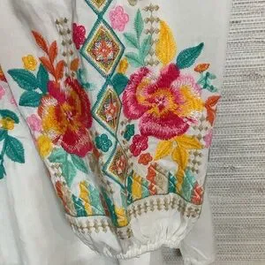 Savanna Jane V-Neck Blouse with Floral Embroidery - White and Pink Plus 1X