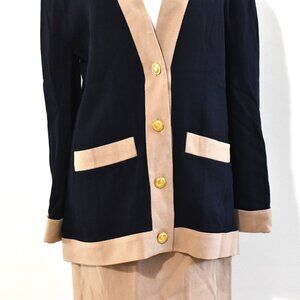 CHANEL Boutique Vintage Navy & Cream Blazer Skirt Suit Set – Gold Buttons