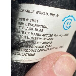Keywords: plush, stuffed animal, bear, black bear, toy, giftable, collectible, childrens toy, animal, cuddly, soft, cute