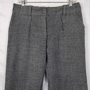 Vintage OLD NAVY 8 Gray Pants Herringbone Tweed Wide Leg Wool Blend Office