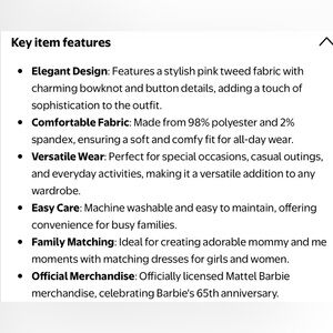 • Finished with a charming satin bow at the neckline and embroidered Barbie logo, this dress is a standout piece for brunch, daytime events, themed parties, or anyone who loves chic, statement fashion.