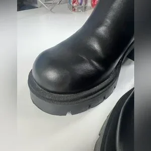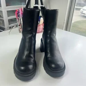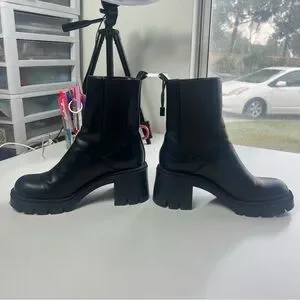 Zara Block Heel Platform Ankle Chelsea Boot Lug Sole Black Size 37 US 6.5 NWT