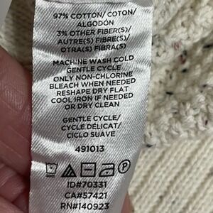 Classic and comfortable, this LOFT sweater is a versatile addition to any wardrobe. Featuring a cream-colored knit with subtle speckled detailing, this pullover boasts a round neck and a relaxed fit. The textured knit adds visual interest, while the neutral color makes it easy to pair with various outfits. Perfect for casual weekend outings, cozy evenings at home, or as a stylish layering piece for cooler days.