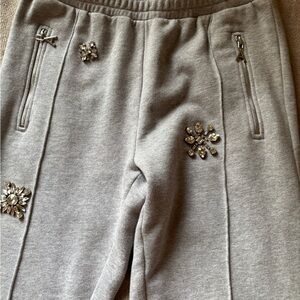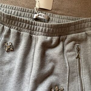 Stylish AREA gray women’s sweatpants featuring elegant embellishments. Zipper pockets with A on them Perfect for adding a touch of sparkle to any outfit. Crystals are gorgeous. Size small