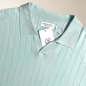 New Collars & Co L Aqua Maranello Rib Knit Polo Short Sleeve Tailored Fit Preppy