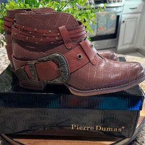 Pierre Dumas Embossed Leather Ankle Boots with Buckle BNWT and box