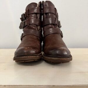 Frye Valerie Strappy Shearling-Lined Moto Boots Size 7.5