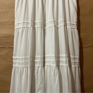 Anthropologie The Somerset Linen Maxi Dress Tiered Smocked Popover White Size XL
