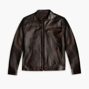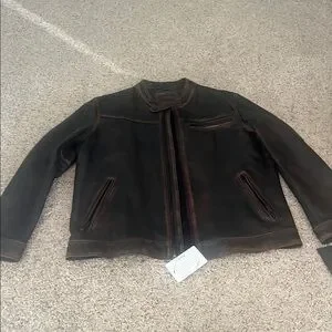 Thursday Boots Leather Roadster Jacket (Black Coffee) athletic cut size XL