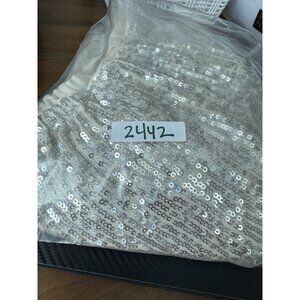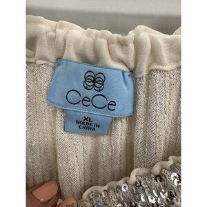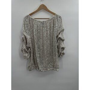 Cece Women XLarge Sequin Silver Blouse 3/4 Sleeve Lantern Elastic Waist Glam