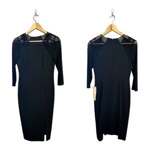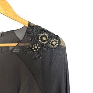 Adrianna Papell - Short Black Crepe Dress Sheer sleeves beaded embroidered 2