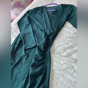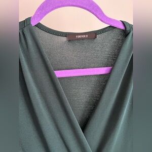 Forever 21 Dark Green Long Sleeved V Neck Fitted Dress Size Medium GUC