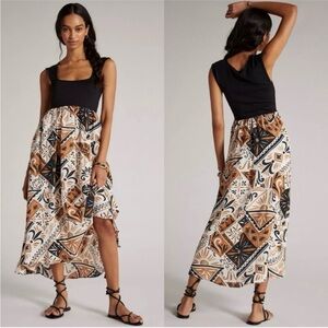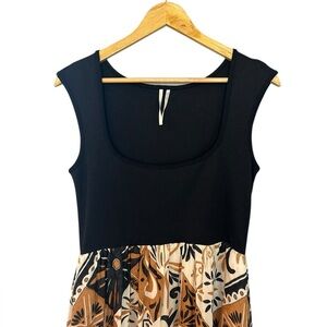 Anthropologie Sleeveless Printed Twofer Maxi Dress Black Brown Size Small Petite