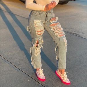 Fashion Nova With Just a Look Boyfriend Jeans Distressed Sz.13