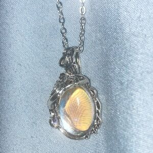 Moonstone Silver Tone Pendant Necklace