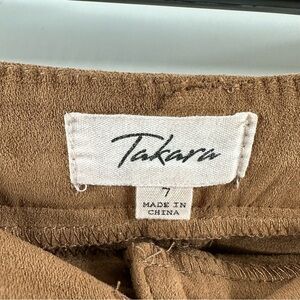 Takara brown suede mini skirt in size 7, featuring a classic button-front design. Made with soft faux suede for a chic, vintage-inspired look that’s easy to dress up or down. Pairs perfectly with tights and boots in cooler weather or a tank and sandals in warmer months. A versatile staple for any closet.