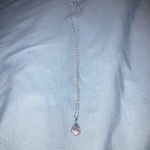 This elegant necklace features a stunning pink pendant set in a delicate silver chain. Perfect for adding a touch of sophistication to any outfit.