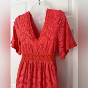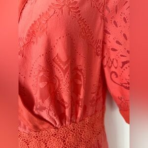FARM Rio Dress Devore Lace Dress Midi Orange size XS Petite