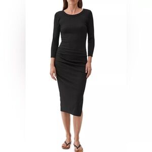 Michael Stars, made in LA from soft and breathable Ultra Rib fabric dress. Detailed with a V-neckline, side slit, and rouching at the hips for a flattering finish. Very stretchy and comfy!