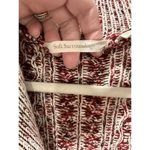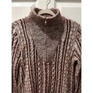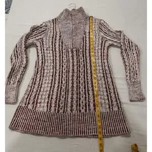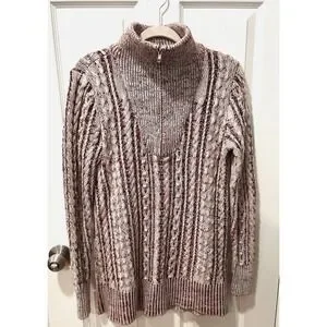 Soft Surroundings Tunic 1/4 Zip Sweater Cableknit Sm Cottagecore Pink/Red/Cream