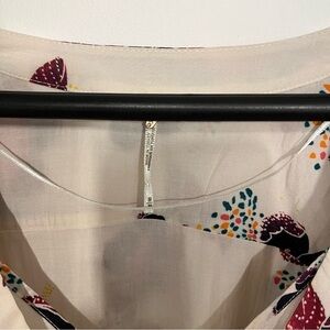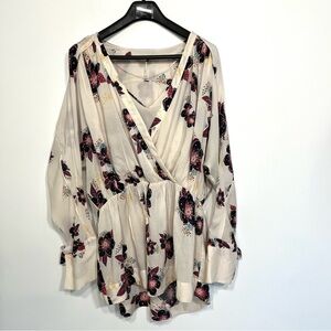 Free People Tuscan Dreams Tunic Top, Blouse, boho floral, long sleeve, blouson Medium. Underarm to Underarm measurement laid flat is approximately 18” Underarm to bottom is approximately 14”.