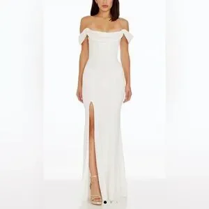 NEW Dress the Population Melania Off the Shoulder Corset White Gown Sz XL