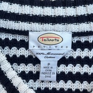 Talbots Petite Navy and White Knit Sweater Cardigan Size Small Petite