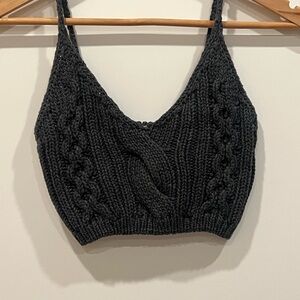 Free People Charcoal Cable Knit Crop Top