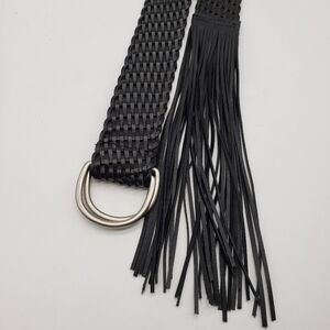 Unbranded women OS black woven belt with fringe leather
