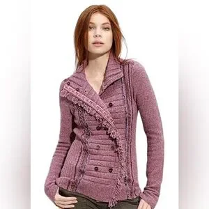 Free People Mauve Cuddle Bear Double Breasted Cardigan Sweater size SX