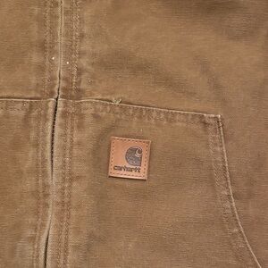 Men’s sturdy Carhart canvas jacket. Monogrammed MISSISSIPPI STATE (MS). Has hood with strings to tighten for better warmth. Perfect for outdoor adventures. Does show some wear…good pre-owned condition