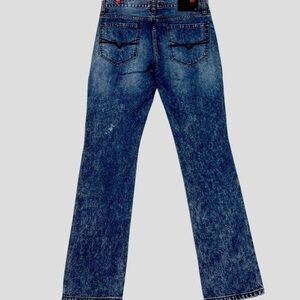 Bold Y2K nostalgia with these GUESS Los Angeles Del Mar Fit Jeans. Designed with a flattering low-rise waist, slim straight leg, black velvet backing and heavy front distressing, they blend edgy 2000s attitude with timeless denim styling with black velvet patching. The rich blue wash and signature red label bring major vintage energy.
