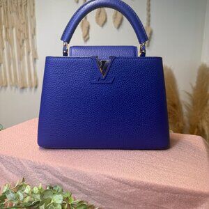 Selling my Louis Vuitton Capucines BB in the stunning Blue shade with gold hardware.This bag is NEVER worn, only stored. Zero marks, zero wear — truly new / giftable condition.