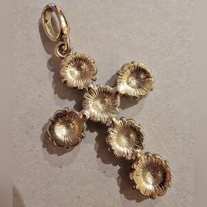 It's a Christian/symbolic cross with a playful floral twist, blending faith and garden motifs—common in #boho, #estate, or fashion jewelry of that era.