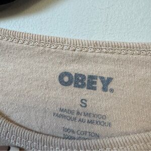 Brand new with tags attached women’s OBEY tan long sleeve cropped top, spell out on the front of the shirt