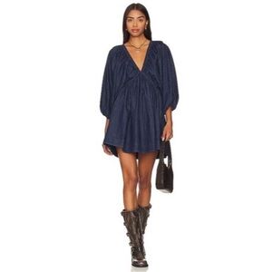 Free People Portia Denim mini dress. Adorable puff sleeves, so flattering on. Size small will fit up to a medium. Can be worn as a tunic as well. Like new condition.