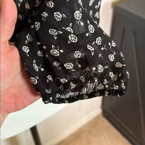 Love Tree Sheer Cropped Milkmaid Top Large Ditsy Floral Smocked Babydoll Y2k Tie Front Puff Long Sleeves Dark Fairy Whymsygoth Black