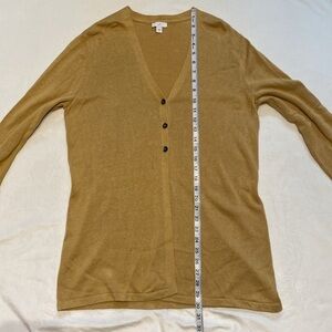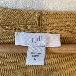 J Jill Tan Linen Button V neck Cardigan • Spring Flare Loose Fit Fisherman Hip
