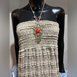 Mocha Brown Stretch Lace Bohemian Strapless Maxi Dress New Sz XL