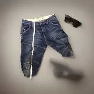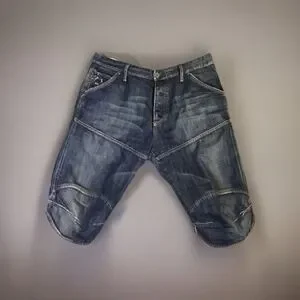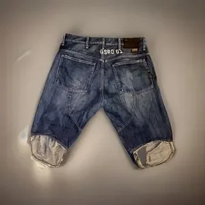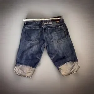 The vintage G-Star custom biker blue jeans jean shorts in size 36 are a stylish and edgy addition to any man's wardrobe. Biker style, these shorts are perfect for those looking to make a statement with their fashion choices. The G-Star brand ensures quality and durability, making these shorts a timeless piece for any biker-inspired look. Size 36 offers a comfortable fit for a regular-sized waist, making them a versatile and trendy choice for summer days or casual outings.