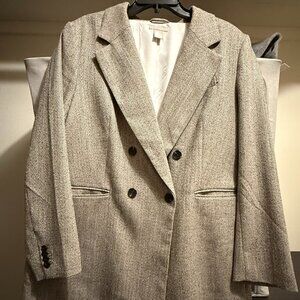 H&M Double-breasted blazer - Greige/Herringbone-patterned - Size Large