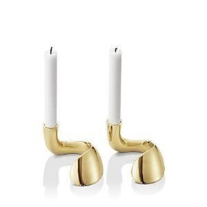 Georg Jensen Stainless Steel Table Candleholder Goldplated Set Gold Size OS NWB