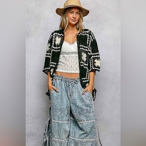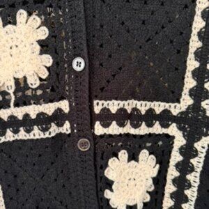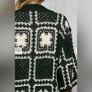 POL GRANNY SQUARE BUTTON FRONT OVERSIZED SHIRT CARDIGAN